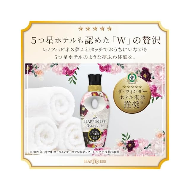 レノアハピネス夢ふわタッチは、5つ星ホテルも認めた香りも肌ざわり。レノアハピネス夢ふわタッチで、おうちにいながら5つ星ホテルの贅沢を体験してください。