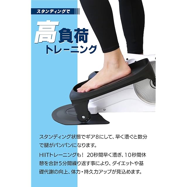 【立・座の2WAY】立ち漕ぎも、座って漕ぐことも可能な2WAY仕様となっております。立ちこぎをすることにより体感を使いながら有酸素運動が出来ます。付属パッドをペダルに載せることで裸足でも使用可能となり、いつでもお気軽にご使用いただけます。
