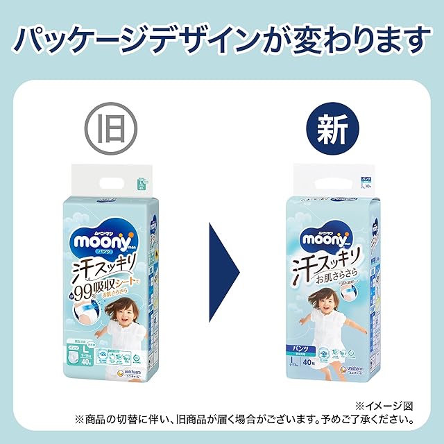 商品名:【おむつ内温度マイナス2度! 】ムーニーマン 汗スッキリ パンツ Lサイズ 男女共用 (9~14kg)160枚(40枚×4)[ケース品] オムツ