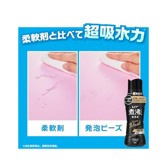 レノア 煮沸レベル超消臭 抗菌ビーズ MEN Fresh Musk 清潔感あふれるムスクの香り 詰め替え 1410mL×5袋 [ケース品] 柔軟剤と一緒に使って効果長続き