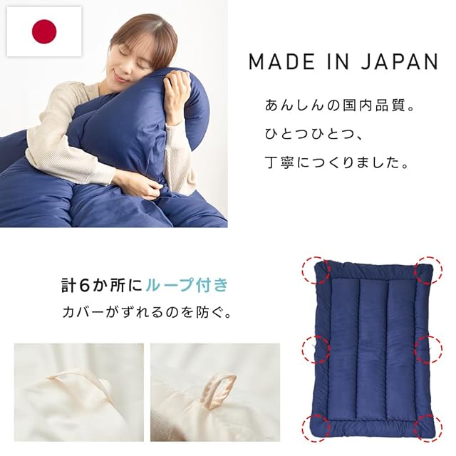 アイリスプラザ 洗える掛け布団 日本製 ネイビー シングル 丸洗いOKでいつでも清潔 軽量2.4kg 抗菌・防臭・防ダニ 通年での使用可能 幅約150×奥行約210×高さ約8 ポリエステル100%で 速乾性 心地よい暖かさ