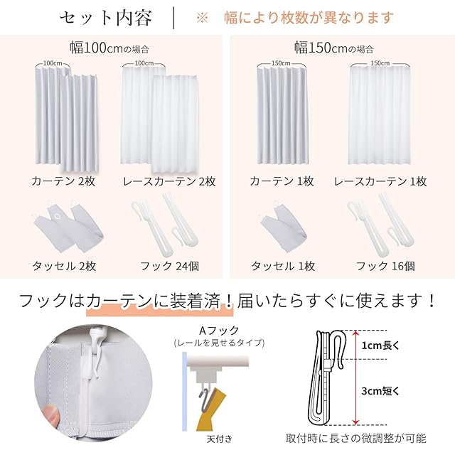 【99.9%以上遮光】迷ったらこれ!シンプル&機能性重視の方におすすめです。この4枚セット(99.9%以上遮光ドレープカーテン2枚,レースカーテン2枚)を選択する理由:①光沢を抑えたマットな質感が美しい。②黒ずみの少ないなめらかな生地。③快適に過ごせる優れた性能。遮光率99.9%以上、日差しの強い窓でもしっかりと遮光できるので、光をできる限りシャットアウトしたい方におすすめです。