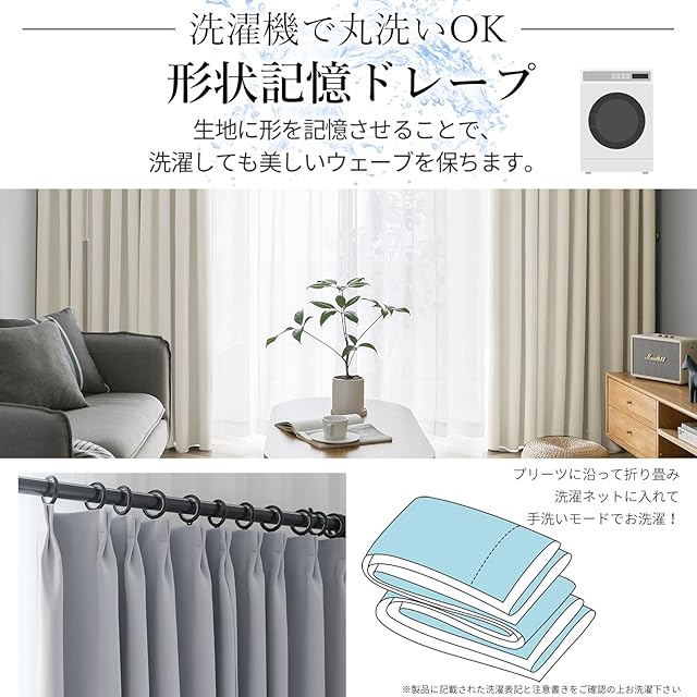 【遮熱保温·形状記憶】届いてすぐ使えるドレープカーテン2枚、同色タッセル付きます。夏は外の熱気をカットし、室温の上昇を抑え冷房効率アップします。冬は外の冷気を遮り、室内の暖かい空気を逃がさないので暖房効率もアップします。ペットにも116年中快適に過ごせます。洗濯機でまるごと洗えます。お手入れしやすいのでいつも清潔に使用できます。カーテンの重みで洗濯ジワも伸ばすことができので、形態安定としてはとても効果が期待できます。