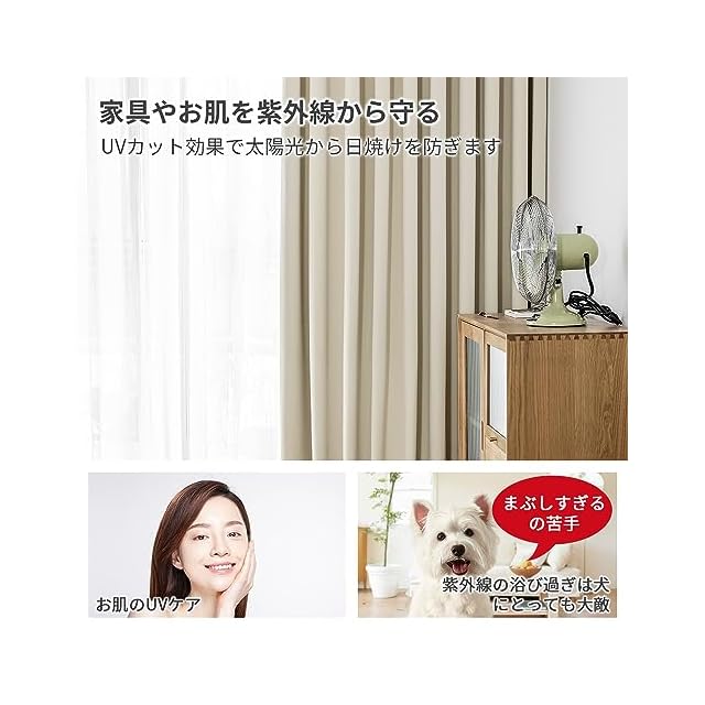 【ペットと人のためUVカット】このカーテンを使えば、紫外線をカットすることによってお肌も守るし、家具の日焼けや色褪せ防止にも働きます。また、犬の目は人間よりも紫外線に弱いと言われております。紫外線は犬の皮膚にもダメージを与えるので、浴び過ぎなら犬にとっても大敵です。そのため、UVカット効果で大切なペットを紫外線から守れます。