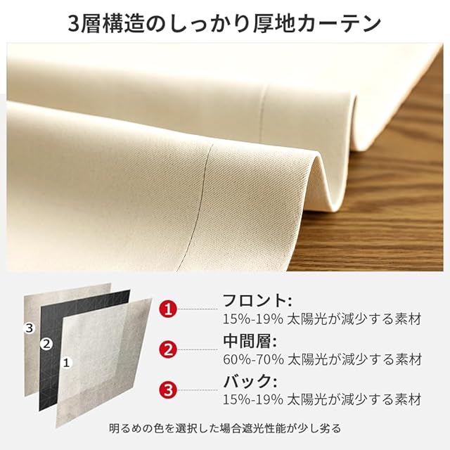 【プライバシーを守る】室内の光を外に漏れにくくする効果があるだけではなく、夜に部屋の明かりを付けている時でも外から人影が見えづらく、プライバシーを守ることができます。女性の一人暮らしでもこのカーテンなら安 心できる