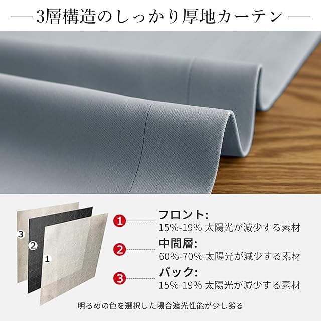 【プライバシーを守る】室内の光を外に漏れにくくする効果があるだけではなく、夜に部屋の明かりを付けている時でも外から人影が見えづらく、プライバシーを守ることができます。女性の一人暮らしでもこのカーテンなら安心感を得られる。