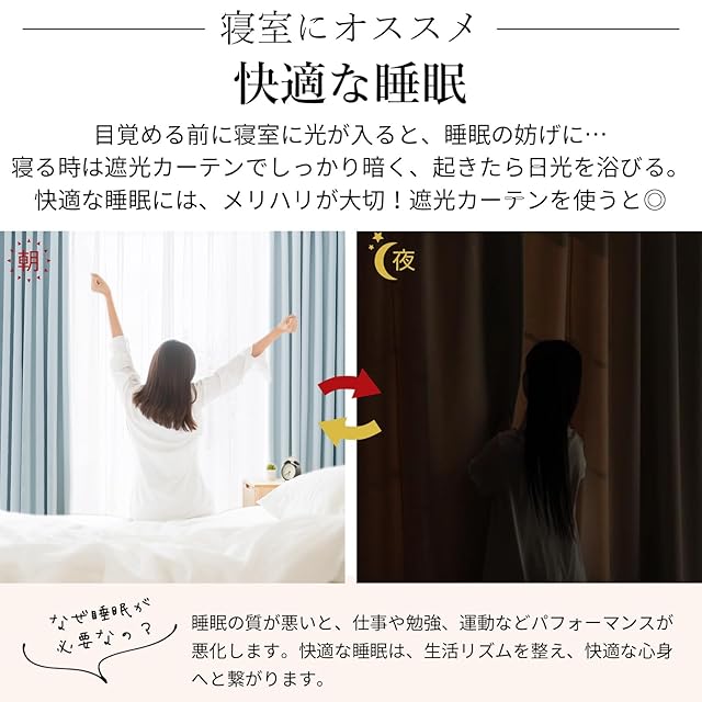 【プライバシーを守る】室内の光を外に漏れにくくする効果があるだけではなく、夜に部屋の明かりを付けている時でも外から人影が見えづらく、プライバシーを守ることができます。女性の一人暮らしでもこのカーテンなら安心感を得られる。