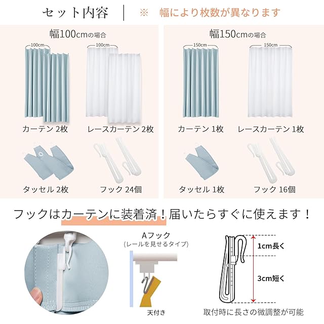 【99.9%以上遮光】迷ったらこれ!シンプル&機能性重視の方におすすめです。この4枚セット(99.9%以上遮光ドレープカーテン2枚,レースカーテン2枚)を選択する理由:①光沢を抑えたマットな質感が美しい。②黒ずみの少ないなめらかな生地。③快適に過ごせる優れた性能。遮光率99.9%以上、日差しの強い窓でもしっかりと遮光できるので、光をできる限りシャットアウトしたい方におすすめです。