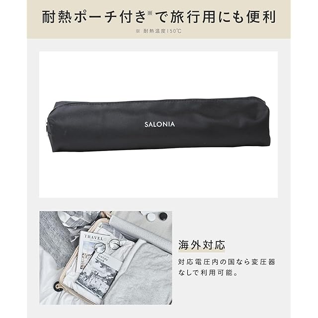 SALONIA サロニア セラミック カール ヘアアイロン コテ 25mm 海外対応 耐熱ポーチ付 SL-008BE ベージュ