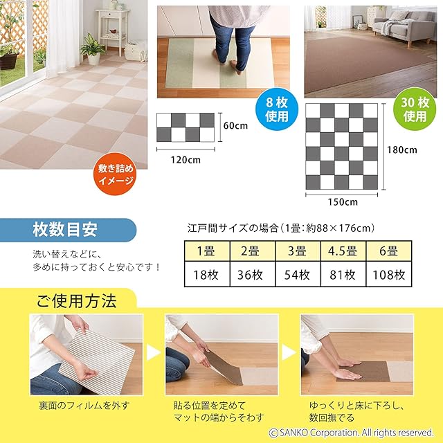【何度も貼ってはがせる】 簡単に外せて、何度でも敷き直し可能