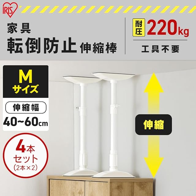 【4本セット】アイリスオーヤマ 転倒防止 突っ張り棒 転倒防止棒 転倒防止器具 転倒防止用突っ張り棒 転倒防止 家具転倒防止伸縮棒Mサイズ ホワイト KTB-40R 突っ張り棒 強力 伸縮棒 防災用品 転倒防止棒 防災グッズ 地震対策 耐圧約220kg Mサイズ