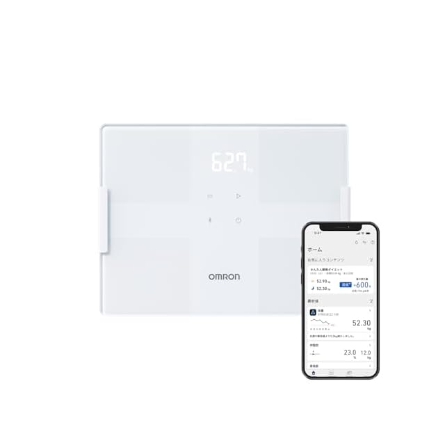 オムロン 体重 体組成計 カラダスキャン ホワイト KRD-503T-W スマホ連動 データ自動転送 自動認識 乗るだけで測定開始 内臓脂肪レベル 体脂肪率 BMI 骨格筋率
