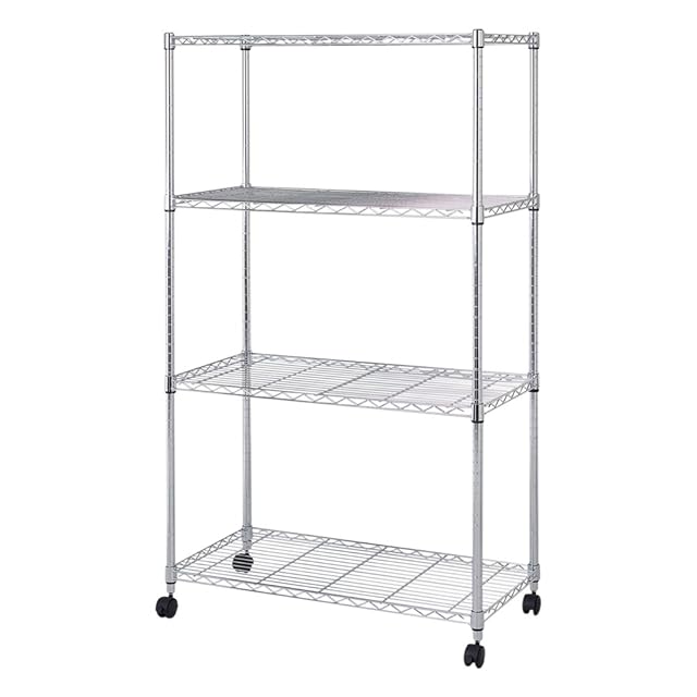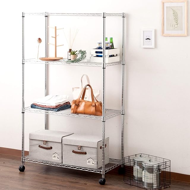 商品名:ドウシシャ ルミナス互換 メタルルミナスラック 幅90 4段 スチールラック 収納棚 幅90×奥行46×高さ155cm 全体耐荷重320kg 頑丈 キャスター付き 防錆加工 ポール径25mmパーツ対応 業務用 シェルフ キッチン収納 EL25-90154