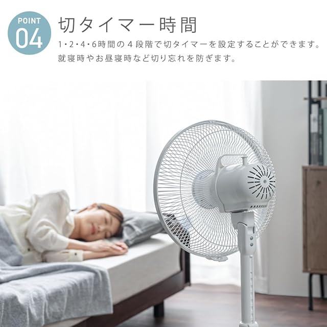 風量調節:4段階(弱/中/強/リズム)、高さ調節:約68~88cm、切タイマー:1/2/4/6h、首振り:○