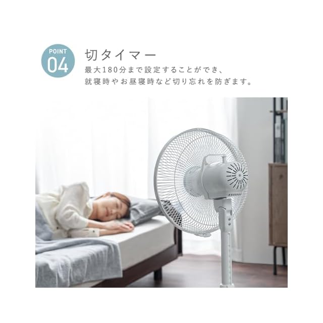 風量調節:3段階(弱/中/強)、高さ調節:約68~88cm、切タイマー:30/60/90/120/150/180min、首振り:○