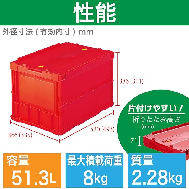 商品名:トラスコ中山(TRUSCO) 収納ケース 収納ボックス 薄型折りたたみコンテナ ロックフタ付 レッド 50L TR-C50B-R