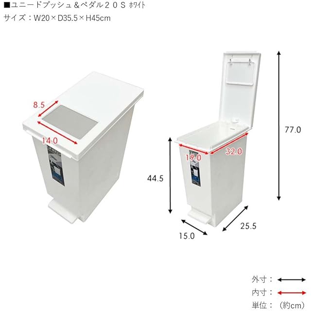 新輝合成(Shinki Gosei) トンボ ユニード ゴミ箱 プッシュタイプ 軽いペダルでサッと開く 20リットル ホワイト 幅20x奥行35.5x高さ45cm 蓋付き 20S 日本製