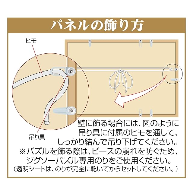 絵柄を一層引き立てる豪華な金モール仕様のパズル専用パネル。落ち着いた色合いのベーシックカラーと色鮮やかなシャインカラーを用意しました。