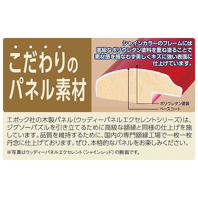 木製のやさしい質感と、絵柄を一層引き立てる豪華な金モール仕様のパズル専用パネルです。