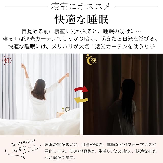 【プライバシーを守る】室内の光を外に漏れにくくする効果があるだけではなく、夜に部屋の明かりを付けている時でも外から人影が見えづらく、プライバシーを守ることができます。女性の一人暮らしでもこのカーテンなら安心感を得られる。