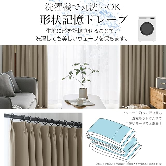 【遮熱保温·形状記憶】届いてすぐ使えるドレープカーテン2枚、同色タッセル付きます。夏は外の熱気をカットし、室温の上昇を抑え冷房効率アップします。冬は外の冷気を遮り、室内の暖かい空気を逃がさないので暖房効率もアップします。ペットにも96年中快適に過ごせます。洗濯機でまるごと洗えます。お手入れしやすいのでいつも清潔に使用できます。カーテンの重みで洗濯ジワも伸ばすことができので、形態安定としてはとても効果が期待できます。