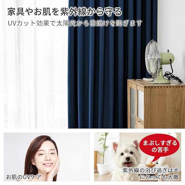 【ペットと人のためUVカット】このカーテンを使えば、紫外線をカットすることによってお肌も守るし、家具の日焼けや色褪せ防止にも働きます。また、犬の目は人間よりも紫外線に弱いと言われております。紫外線は犬の皮膚にもダメージを与えるので、浴び過ぎなら犬にとっても大敵です。そのため、UVカット効果で大切なペットを紫外線から守れます。