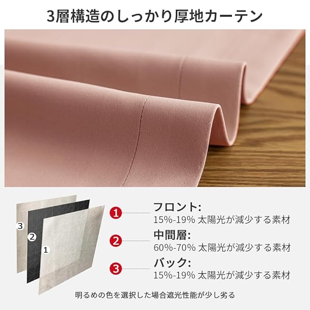 商品名:AIFY カーテン 2枚セット 99.9%以上遮光 遮光 小窓 ドレープカーテン UVカット 形態記憶加工済み 断熱 節電対策 昼夜目隠し 保温 おしゃれ 洗える 洗濯機対応 (カーテン2枚) 幅100cm×丈90cm ピンク