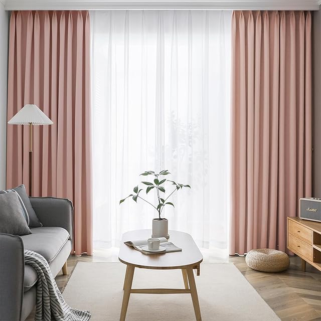 商品名:AIFY カーテン 4枚セット 99.9%以上遮光 小窓 ドレープカーテン UVカット 形態記憶加工済み 断熱 節電対策 昼夜目隠し 保温 おしゃれ 洗える 洗濯機対応 (カーテン2枚 レース2枚) 幅100cm x 丈178 cm ピンク