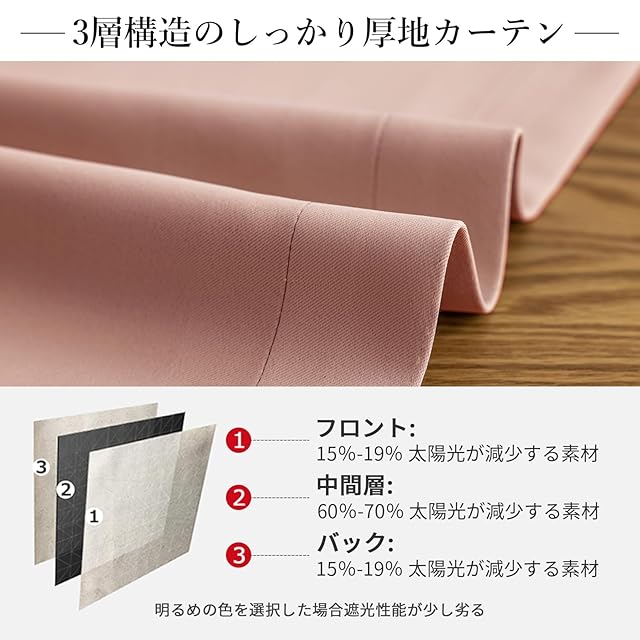 【プライバシーを守る】室内の光を外に漏れにくくする効果があるだけではなく、夜に部屋の明かりを付けている時でも外から人影が見えづらく、プライバシーを守ることができます。女性の一人暮らしでもこのカーテンなら安心感を得られる。