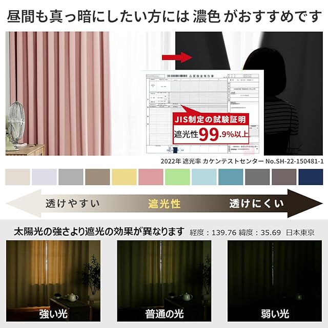 【プライバシーを守る】室内の光を外に漏れにくくする効果があるだけではなく、夜に部屋の明かりを付けている時でも外から人影が見えづらく、プライバシーを守ることができます。女性の一人暮らしでもこのカーテンなら安心感を得られる。