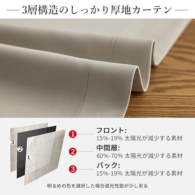 【プライバシーを守る】室内の光を外に漏れにくくする効果があるだけではなく、夜に部屋の明かりを付けている時でも外から人影が見えづらく、プライバシーを守ることができます。女性の一人暮らしでもこのカーテンなら安心感を得られる。