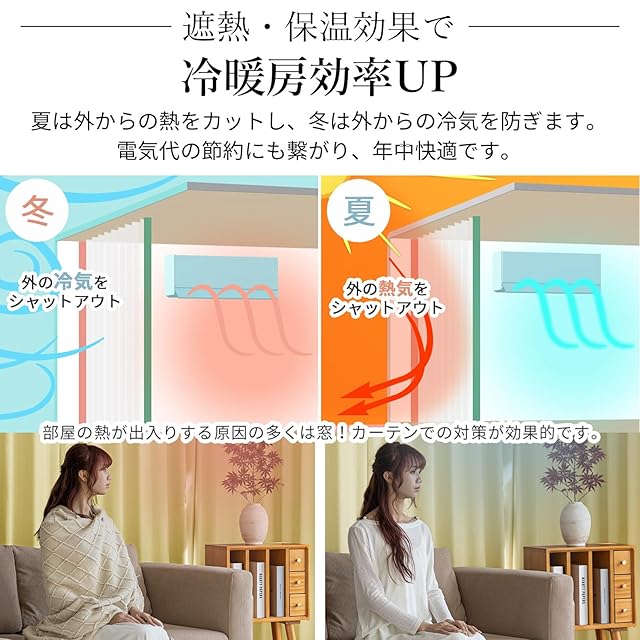 【遮熱保温·形状記憶】届いてすぐ使えるドレープカーテン2枚、同色タッセル付きます。夏は外の熱気をカットし、室温の上昇を抑え冷房効率アップします。冬は外の冷気を遮り、室内の暖かい空気を逃がさないので暖房効率もアップします。ペットにも161年中快適に過ごせます。洗濯機でまるごと洗えます。お手入れしやすいのでいつも清潔に使用できます。カーテンの重みで洗濯ジワも伸ばすことができので、形態安定としてはとても効果が期待できます。