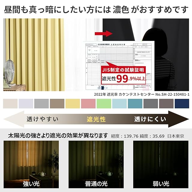 【プライバシーを守る】室内の光を外に漏れにくくする効果があるだけではなく、夜に部屋の明かりを付けている時でも外から人影が見えづらく、プライバシーを守ることができます。女性の一人暮らしでもこのカーテンなら安心感を得られる。