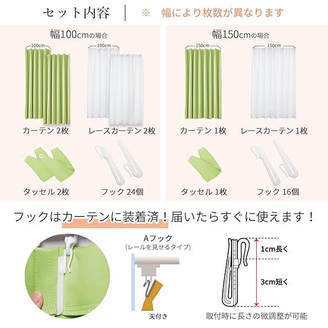 商品名:AIFY カーテン 4枚セット 99.9%以上遮光 小窓 ドレープカーテン UVカット 形態記憶加工済み 断熱 節電対策 昼夜目隠し 保温 おしゃれ 洗える 洗濯機対応 (カーテン2枚 レース2枚) 幅100cm x 丈190 cm ライトグリーン