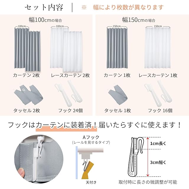 【1級遮光】迷ったらこれ!シンプル&機能性重視の方におすすめです。この4枚セット(1級遮光ドレープカーテン2枚、レースカーテン2枚)を選択する理由:①光沢を抑えたマットな質感が美しい。②黒ずみの少ないなめらかな生地。③快適に過ごせる優れた性能。遮光率99.9%以上、日差しの強い窓でもしっかりと遮光できるので、光をできる限りシャットアウトしたい方におすすめです。