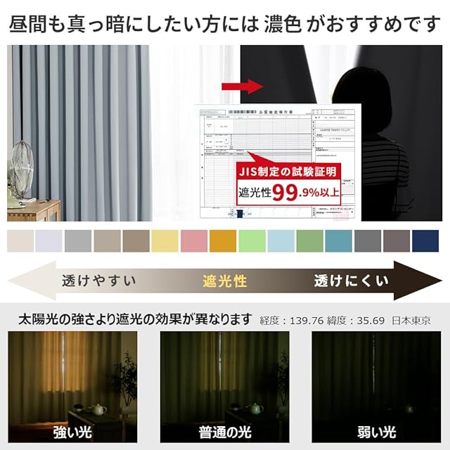 【プライバシーを守る】室内の光を外に漏れにくくする効果があるだけではなく、夜に部屋の明かりを付けている時でも外から人影が見えづらく、プライバシーを守ることができます。女性の一人暮らしでもこのカーテンなら安 心できる