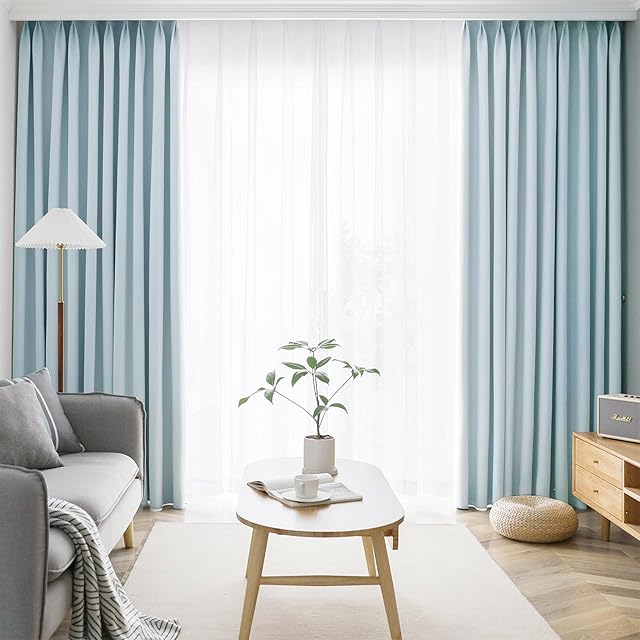 商品名:AIFY カーテン 4枚セット 99.9%以上遮光 小窓 ドレープカーテン UVカット 形態記憶加工済み 断熱 節電対策 昼夜目隠し 保温 おしゃれ 洗える 洗濯機対応 (カーテン2枚 レース2枚) 幅100cm x 丈190 cm ライトブルー