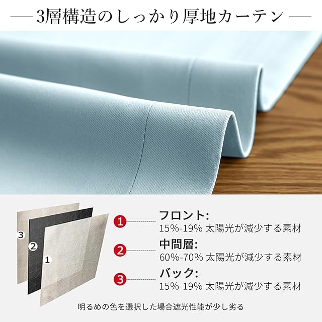 【プライバシーを守る】室内の光を外に漏れにくくする効果があるだけではなく、夜に部屋の明かりを付けている時でも外から人影が見えづらく、プライバシーを守ることができます。女性の一人暮らしでもこのカーテンなら安心感を得られる。