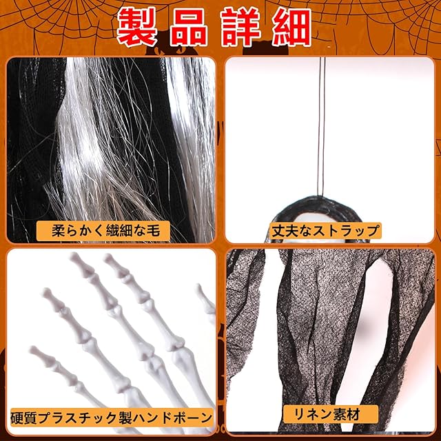 【ハロウィン吊り下げ装飾】光る目、不気味な頭蓋骨、長い白い髪、そして流れるようなローブが特徴のハロウィン吊り下げゴースト2体セット。とても恐ろしく、ワクワクするハロウィンの夜を演出します!