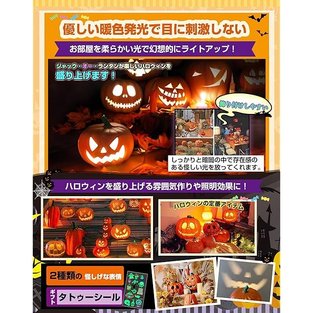 【いろんな場所で大活躍】店舗ディスプレイ、マスカレードパーティー、ハロウィーン、カーニバル、コスプレ、スタイリッシュな装飾、子供部屋のインテリア、バーショーなどにに適しています。玄関やお部屋、お店に飾って楽しめます。ハロウィンを盛り上げる雰囲気作りや照明効果に、ハロウィンの定番アイテムといえば大人気のパンプキンランタン(カボチャライト)と間違いはありません!