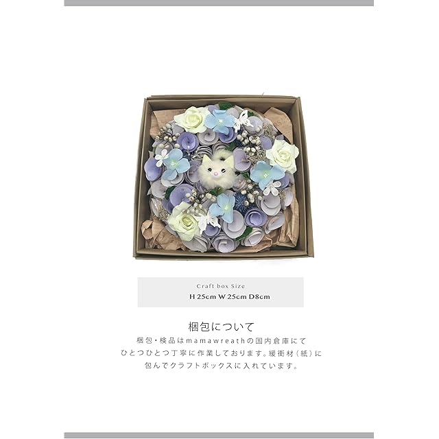 商品名:[ 2025年 mamawreath ]フラワーリース マスコット 花 ギフト プレゼント 猫 人形 贈り物 リース おしゃれ 玄関 インテリア お祝い 誕生日 プレゼント Mサイズ:24cm(直径)×7cm(厚み) (ネコステラルー(WR-41-B-MC-CAT-IVO))