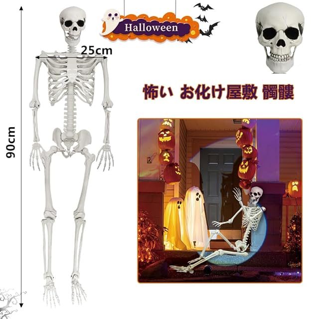 ハロウィン 骸骨 飾り 90cm/170cm等身大 スケルトン ハロウィン飾り 怖い お化け屋敷 髑髏 恐怖 肝試し 幽霊シミュレーション 飾り インテリア ハロウィン 余興 パーティー 道具 置物 ハロウィン グッズ (90CM)