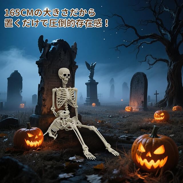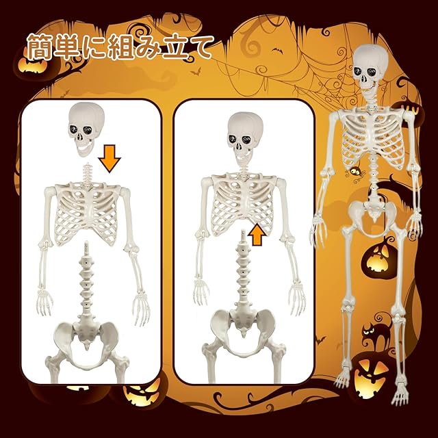 【ハロウィン雰囲気満点】関節をまげてポーズをとることが可能な等身大骸骨です。不気味な雰囲気を引き出してハロウィンの雰囲気を盛り上げるのに役立ちます。