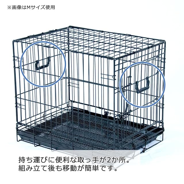 本製品の塗装は、市場で一般的に流通している電着塗装ではなく、より手間がかかる焼付塗装を採用しております。電着塗装と比較すると、さびにつよい仕様となります。 折りたたんだ時に持ち運びが便利な取っ手付き。簡単に扉をロック出来、ペットの安全を守ります。スノコとトレイのずれを防止するストッパー付き。