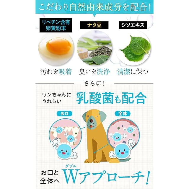 【累計販売数66万本突破!簡単お口ケア】 ①[クリーン]お口の健康を清潔に保つことで健康的に保つ。②[バランス]わんちゃんにとって健康的でキレイな状態を維持。③[ダブルケア]植物エキスのマスキング効果とブラッシング効果(歯磨き)によりしっかり健康と犬のデンタルケアをお届け。