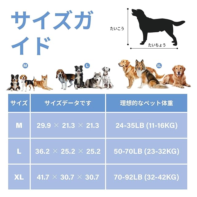 製品仕様:サイズ:長さ106cm × 幅78cm × 高さ78cm,製品重量:約6.7kg,耐荷重:32〜42kg 対象ペット:中型犬〜大型犬,推奨使用場面:外出、旅行、車内、室内など。