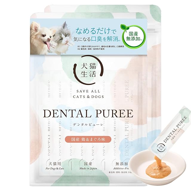 [ 犬猫生活 ] 犬猫兼用 デンタルピューレ 30本×2袋 鶏肉&まぐろ味 歯磨きおやつ 獣医師共同開発【国産 無添加】