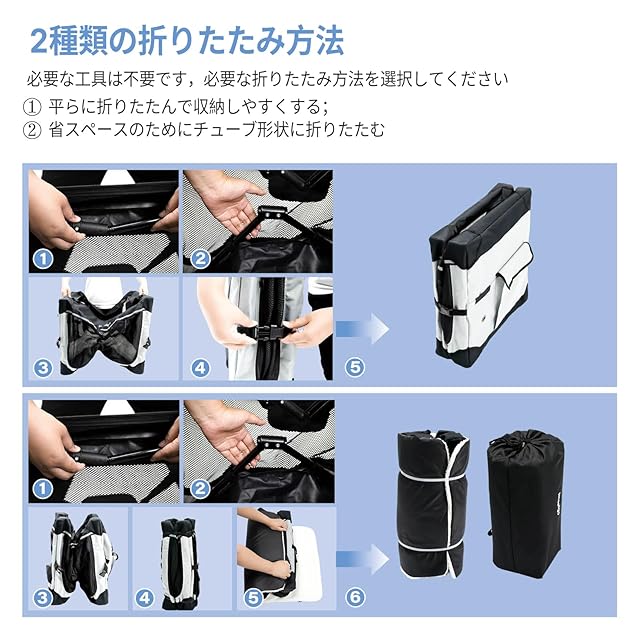 軽量で折りたたみ可能:このペットキャリーは折りたたんで保管でき、軽量で場所を取りません。室内や室外(リビングルーム、寝室、テラス、旅行先など)での使用に最適です。さらに、2つの収納ポケットが付いており、ペット用品を整理して収納できます。