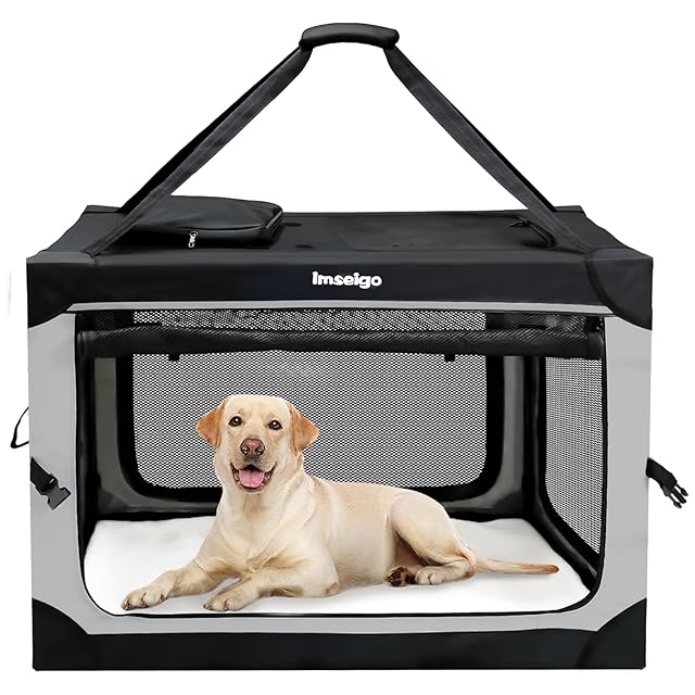imseigo 折りたたみ可能な犬の木箱,中程度の犬のためのフリースベッド付きポータブルソフトドッグ木箱,屋内用3ドアメッシュウィンドウ付き折りたたみ旅行キャリアの犬小屋&屋外,76.2 ×53.3 ×53.3cm,黒
