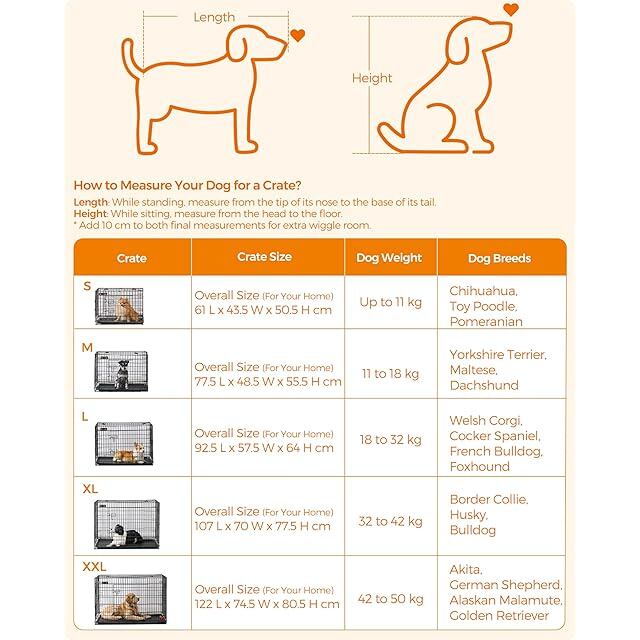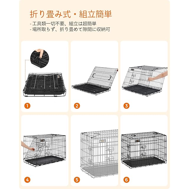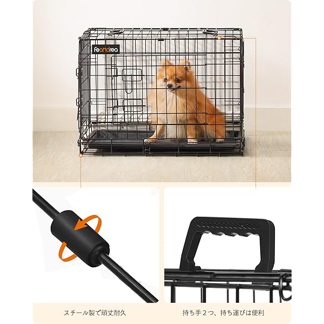 FEANDREA ペットケージ 犬用ケージ 小型犬用 61×43.5×50.5cm 室内外兼用 犬 トレー付き 折り畳み式 持ち手付き 移動便利 PPD024B01